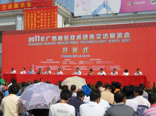 2011年5月18-19日,廣西首屆糖業(yè)技術進步交流展示會(簡稱“糖業(yè)技術展示會”)在南寧舉行。該展示會由廣西壯族自治區(qū)糖業(yè)發(fā)展局主辦,廣西糖業(yè)協(xié)會、廣西制糖學會、廣西甘蔗學會和廣西機械工業(yè)研究院共同承辦。參加糖業(yè)技術展示會的單位有:廣西壯族自治區(qū)工信委、農業(yè)廳、農機局等區(qū)直單位;廣西區(qū)內主產糖市糖業(yè)發(fā)展局(糖辦);廣西區(qū)內制糖企業(yè);國內外參展企業(yè);中國糖業(yè)協(xié)會和廣東、云南、海南三省糖業(yè)協(xié)會等。到會領導主要有中國農業(yè)科學院甘蔗研究中心主任李楊瑞、中國糖業(yè)協(xié)會副理事長兼秘書長閆衛(wèi)民、廣西糖業(yè)發(fā)展局副局長劉全躍、張魯賓等。會議規(guī)模500多人,是廣西糖業(yè)發(fā)展上規(guī)模最大的一次盛會。