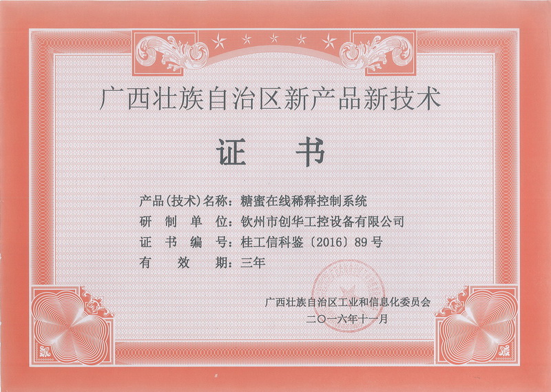 糖蜜在線稀釋系統(tǒng)獲新產(chǎn)品新技術(shù)證書